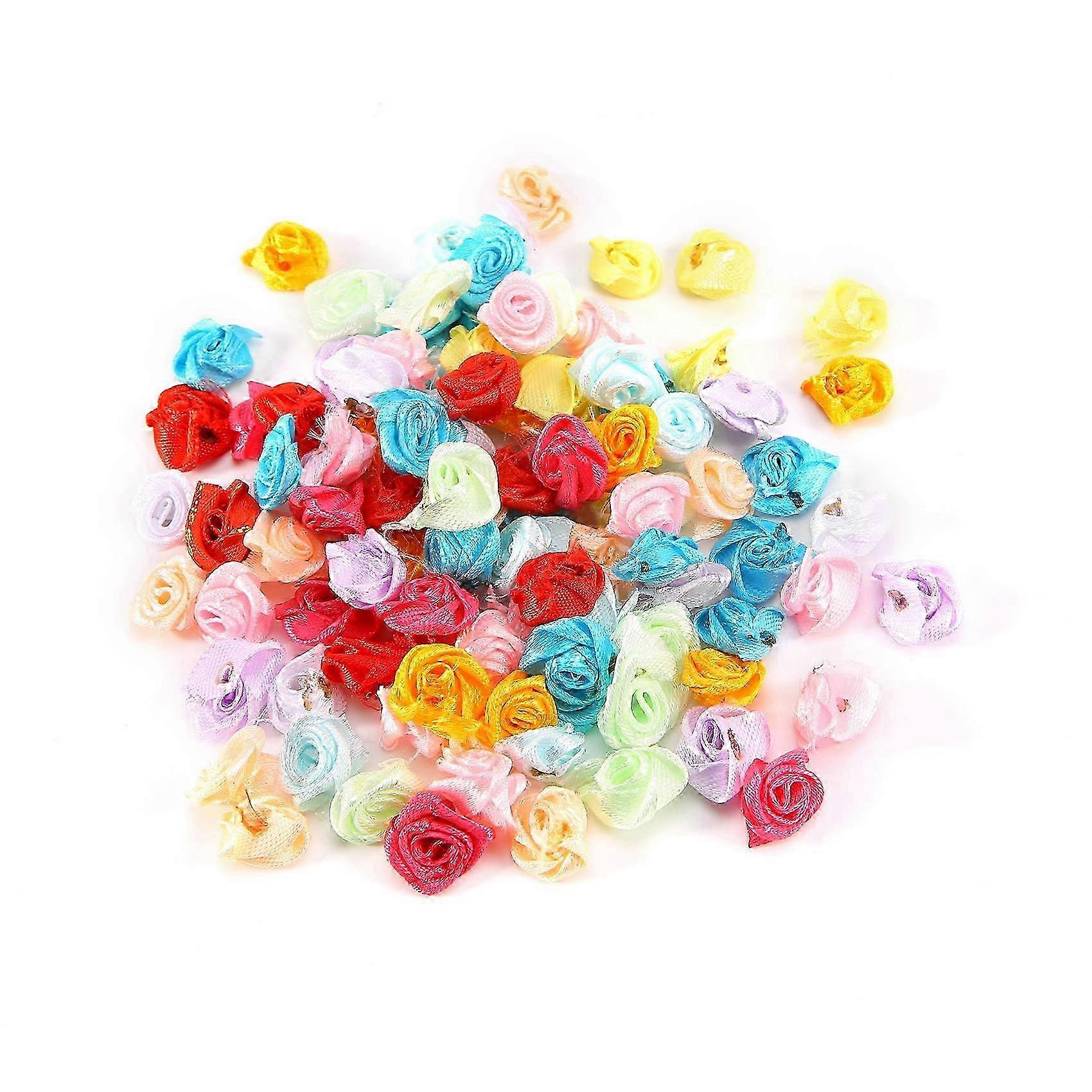 2026 Suitable 100PCS/Lot Mini Handmade Satin Rose Ribbon Fabric Flower Appliques