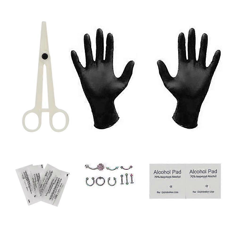 2026 Suitable Tongue Nose Belly Body Jewelry Piercing Rings Clamp Gloves Needles Tool KitType A