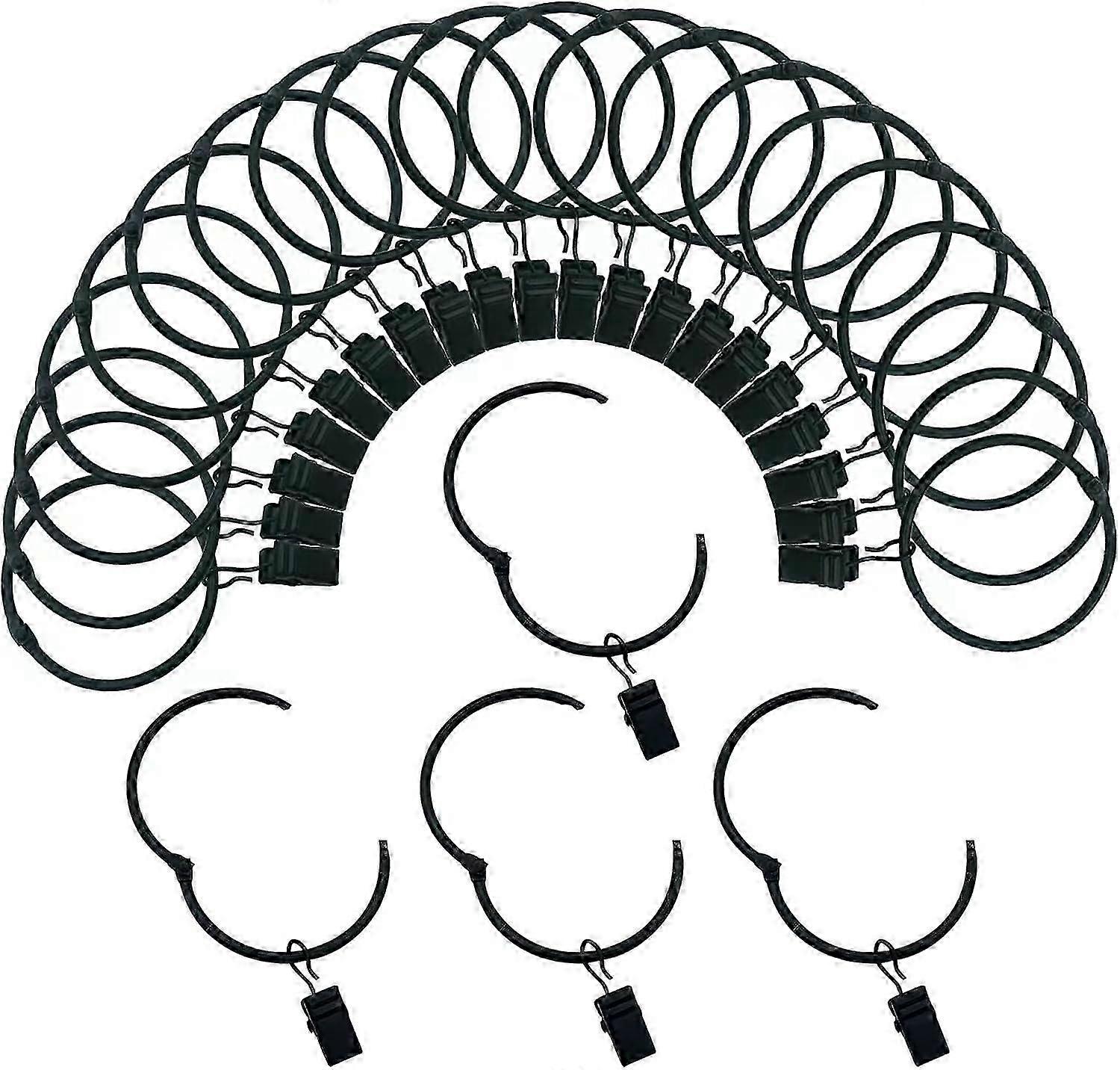 2026 Suitable Curtain rings with clips, 1.5in/38mm inner diameter, openable, 24 pack, rustproof metal hanger rings, decorative drapery, vintage black