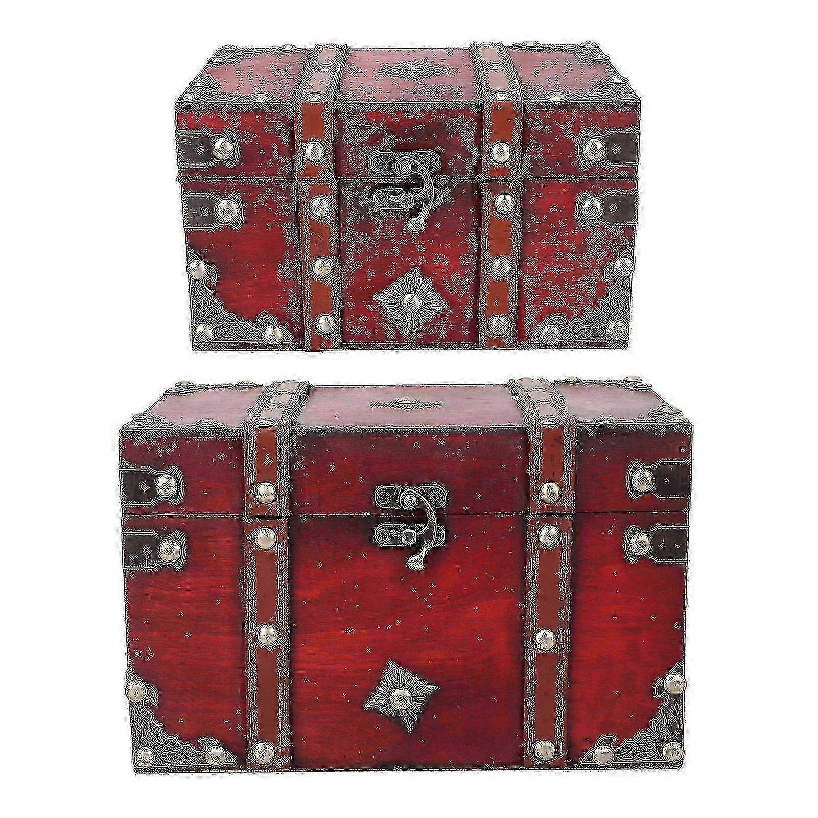 2026 Suitable 2pcs Wooden Storage Box Vintage Multifunctional Wood Suitcase for Postcard Souvenir Photos