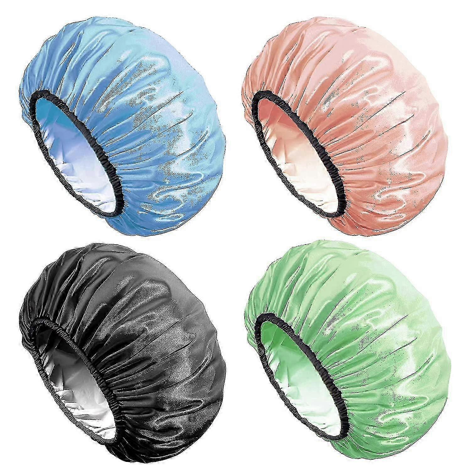 2026 Suitable Shower Cap.4-pack Large Shower Caps For Women Long Hair.premium Soft Silky Satin