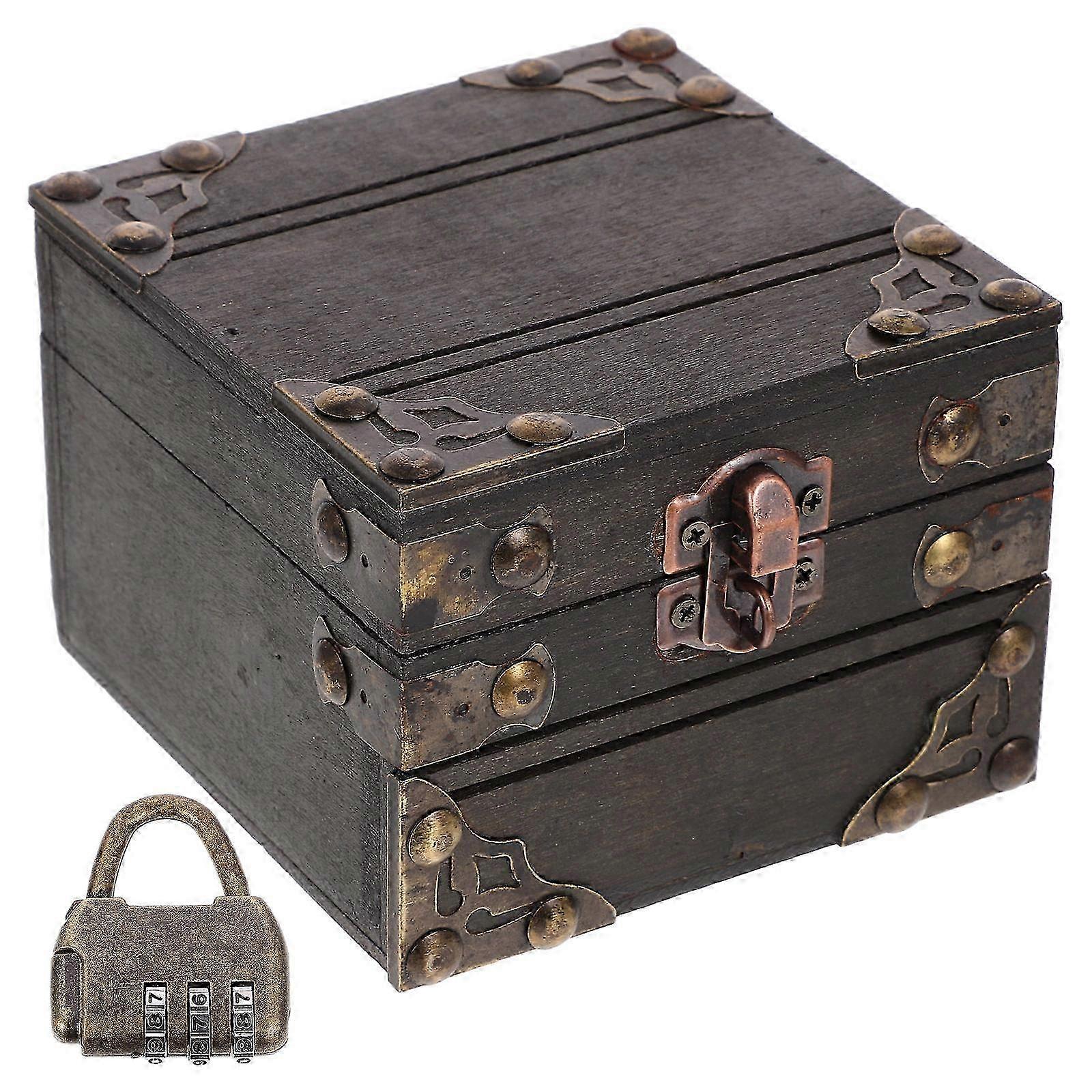 2026 Suitable Black Wooden Storage Box for Jewelry and Treasures with Vintage Design Great for Home Use