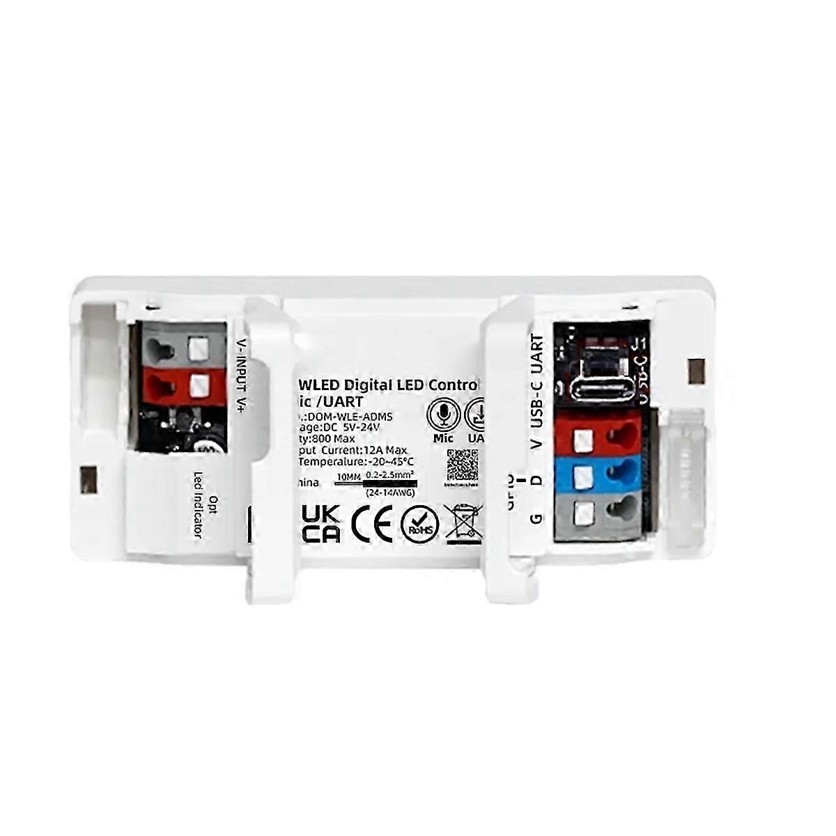 [1. Powerful Performance] • Dual-Core ESP32 Chip - Smooth operation & instant response • Wide Voltage Input (5-24V) - Supports multiple power sources • ⚡ High-Current Output (12A/ch) - Stable drive for 800 LEDs • -type wiring is adopted, and the output end is equipped with pressure wire buckle reinforcement. • Broad Compatibility - WS2811/2812/2812b/2813/2814/2815/2805, SK6812,Sk19703 Strip Light, etc ◇[2. Music Sync & Effects] • High-sensitivity microphone - Real-time audio analysis • Multiple rhythm modes - Pulse/Gradient/Spectrum • Adjustable sensitivity - Optimized for all music genres ◆[3. 100+ Lighting Effects] • Preloaded effects - Static/Dynamic/Rainbow/ • Effect layering - Create custom light combinations • Preset memory - Save multiple scene profiles ◇[4. Smart Control] • Tool-less USB-C updates - Flip-top firmware access • Dual WiFi control - Local & remote management • Smart home ready - MQTT/HA/ compatible • Open - Custom effects & automation ◆[5. Applications] • Events - Parties/KTVs/Weddings • Commercial - Retail/Stage lighting • DIY Projects - Gaming/Art installations Color: White Material: Plastic+Electronic Component Package Contents: 1 * ESP32 WLED Smart LED Controller Only the above package content, other products are not included. Note: Light reflection and different displays may cause the color of the item in the picture a little different from the real thing. The measurement allowed error is +/- 1-3cm.