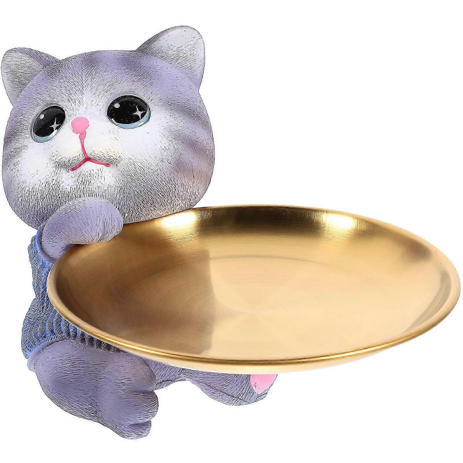 2026 Suitable Lifted Tray Cute Cat Storage Plate Jewelry Holder for Living Room Desktop 17.50X17.00X15.00CM Grey 1 Piece