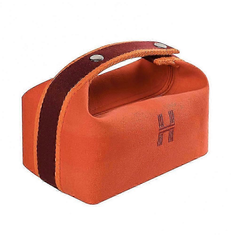 2026 Suitable (Orange)Portable Makeup Waterproof Soft Canvas Large Capacity Cosmetic Bag with Handle compatible with Outdoor Travel
