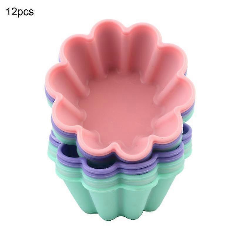 2026 Suitable 12Pcs/Set Creative Flower Shape Muffin Cup Mold Elastic Cute Silicone Cake Mold Baking Accessories