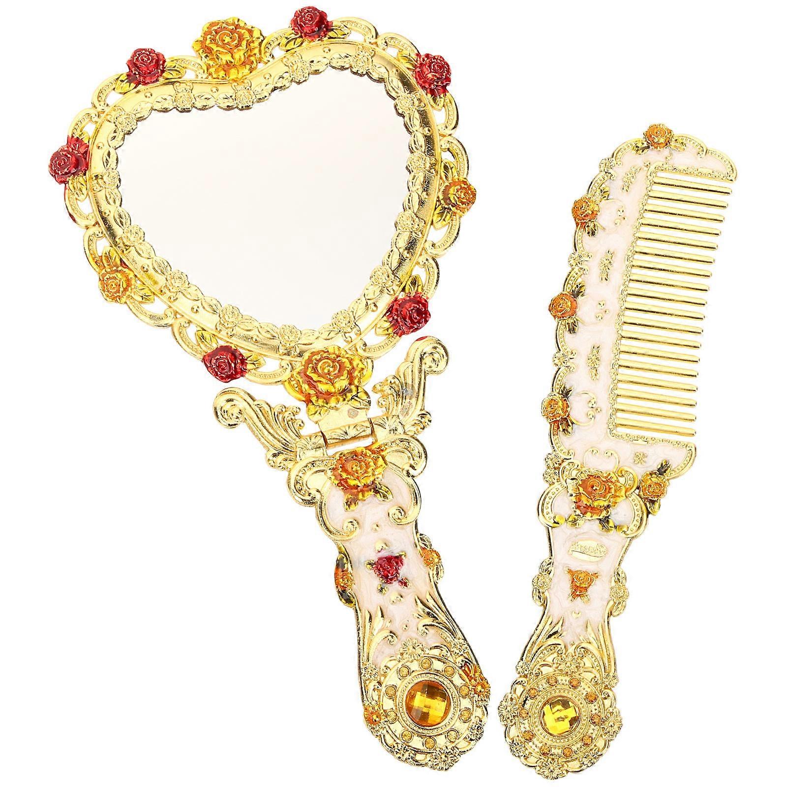 Vintage Handheld Mirror And Comb Makeup Supply 4Set For Women With Heart-Shaped Design And Portable Functionality