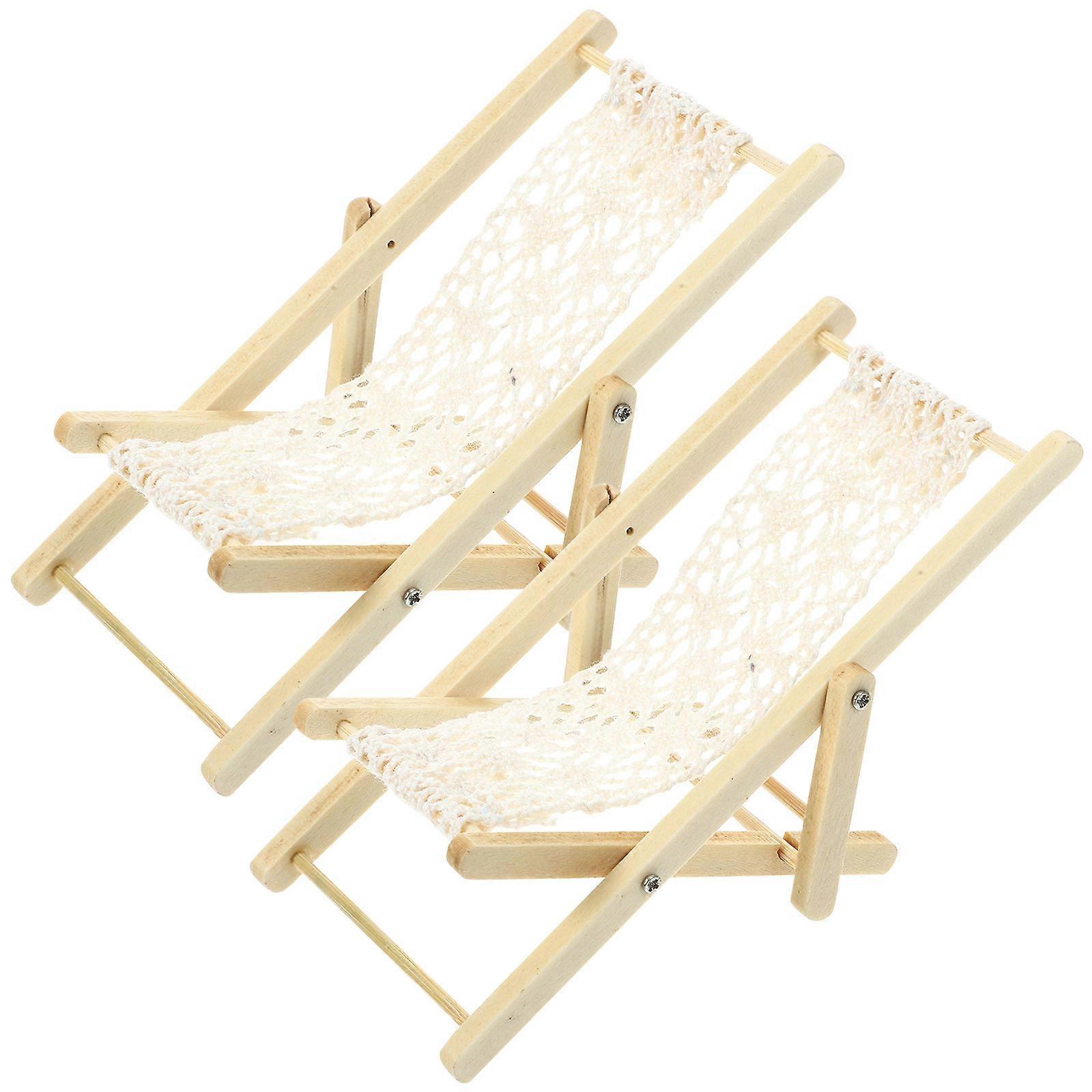 Mini Chair Model Miniature Wooden Deck Chair for Decor 2Pcs