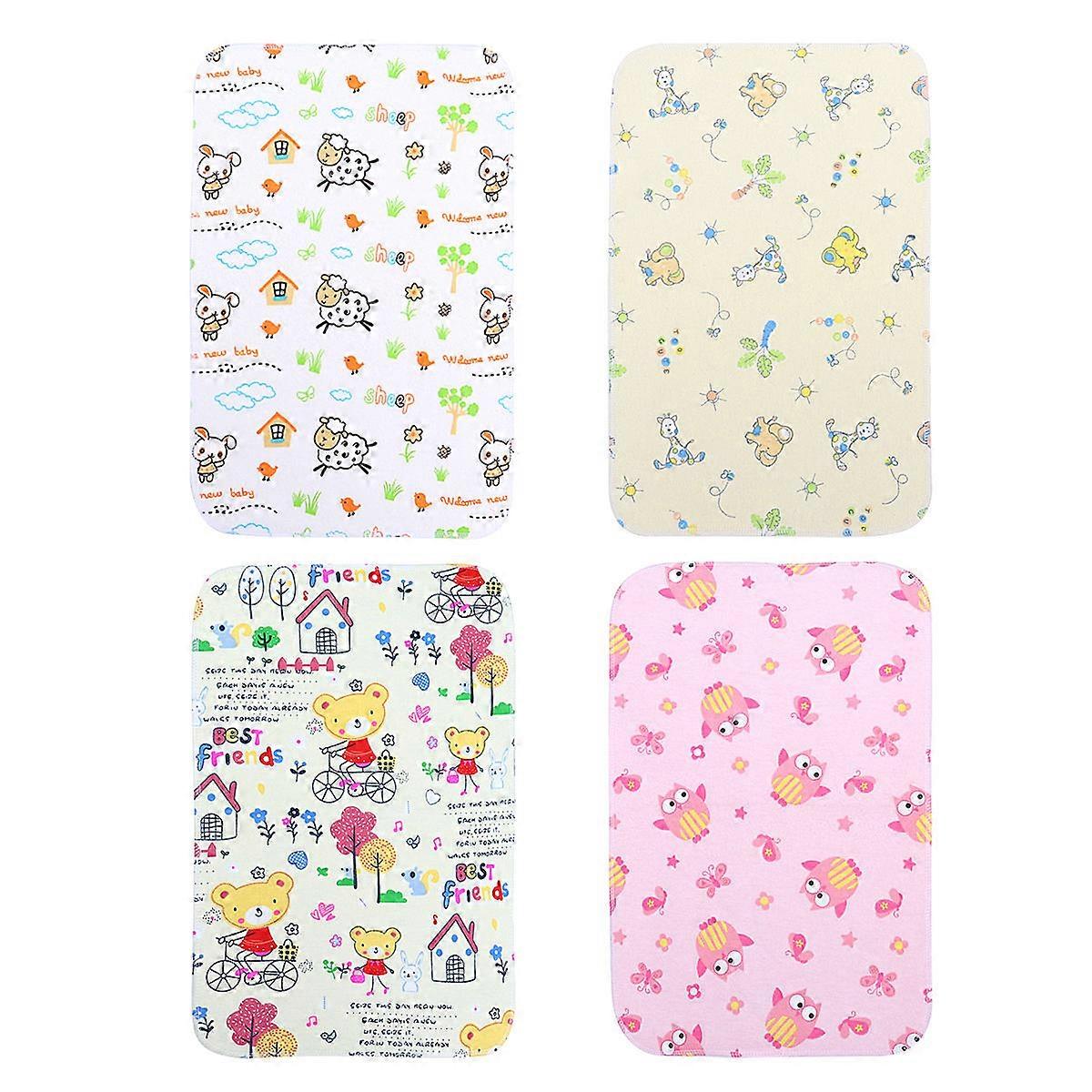 The changing pad covers are made of , durable for long time use. feeling allows the baby to have more comfortable sleep. The product is waterproof, therefore, it will save your time to clean. This waterproof pad provides excellent liquid protection. Perfect for baby or infant use. Feature - Color: As shown. - Material: Cotton. - Size: About 45 x 30 x 1 cm. - Made of cotton material, comfortable and durable for long time use. - Printed with cartoon pattern, and creative. - This waterproof pad provides excellent liquid protection. - Wide application; you can use it anywhere as long as you have enough room for rolling it out. - feeling gives the baby a more comfortable sleep. - Warm Tip: Dear buyer, due to lighting effect, monitor’s brightness,manual measurement and etc., there could be some slight differences in the color and size between the photo and the actual item. Sincerely hope that you can understand! Thank you! Package list: 4 x Baby Changing Pads