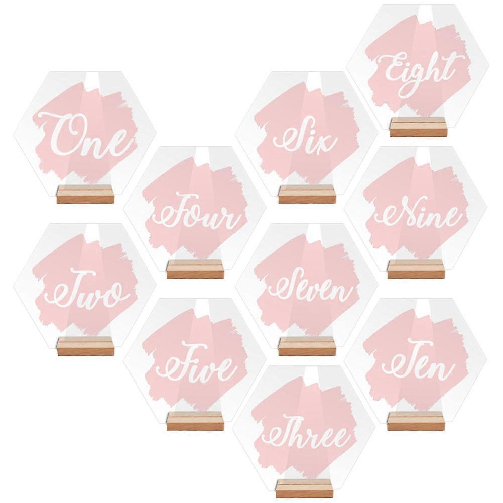 If you are in search of delicate wedding table numbers, then you can take at our product. That's because they can satisfy your needs. Made of acrylic materials, safe and light for service time. Not easy to deform or break, with wooden stands, can bring you convenience. Perfect for various parties, family gatherings, cafes, dinners, restaurants and more. Features -Color:Pink -Material:Wood,acrylic - Size: 6.00X2.50X1.00cm/2.36X0.98X0.39in - Size: 11.50X10.00X0.30cm/4.52X3.93X0.12in - Manufactured by acrylic materials, these table number cards are very practical and for long period using. - With wooden bases, very stable, it can stand safely on the table, will not easily tipping over. - Used for restaurants, banquets, weddings, parties, business talks and any other occasions. - Simple but delicate color, hexagonal shape, chic, full of creativity, can be good additions to any event table decorations. - Take the place of a normal place card to show your guest where to sit, impress them much more. Package list: 10 x Table Numbers 10 x Wooden Bases