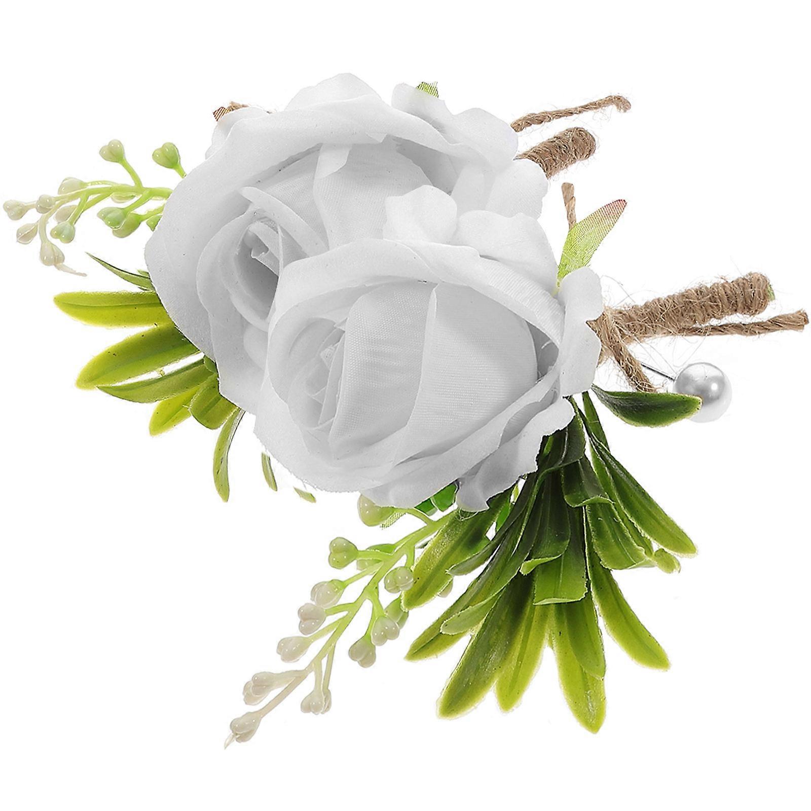 Wedding Boutonniere Groom Rose Corsages for Wedding 2Pcs White Decoration