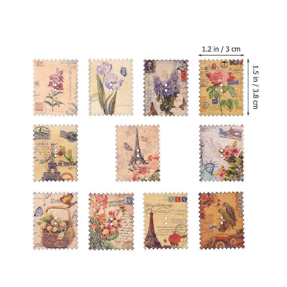 Wooden Stamp Toy for DIY with 20Pcs Mixed Pattern Decorative Buttons