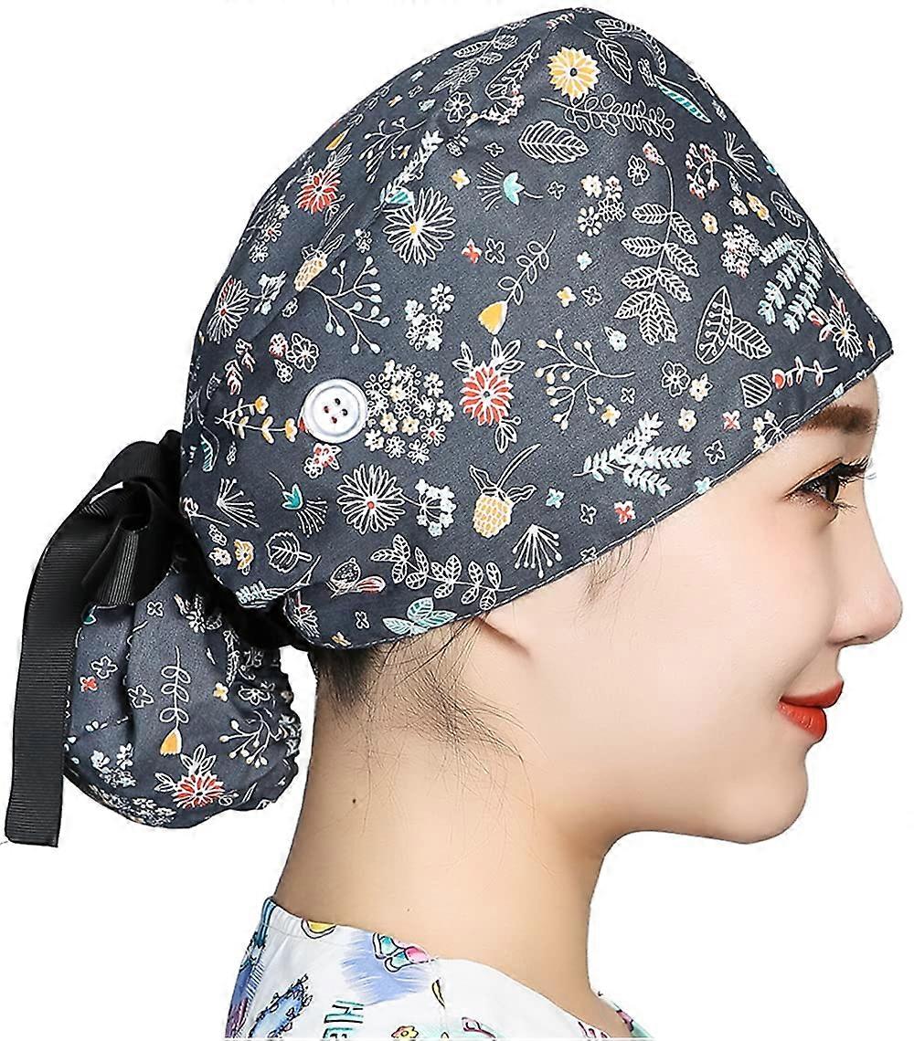 Women Scrub Cap with Buttons and Ribbon Tie for Long Hair, Professional Chef and Beautician Hat #8