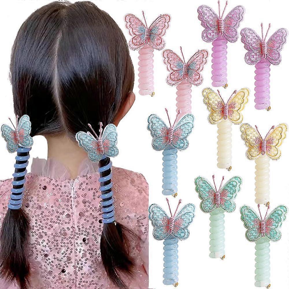 Colorful Butterfly Spiral Hair Ties No Damage Telephone Wire Hair Bands for Kids 10PCS