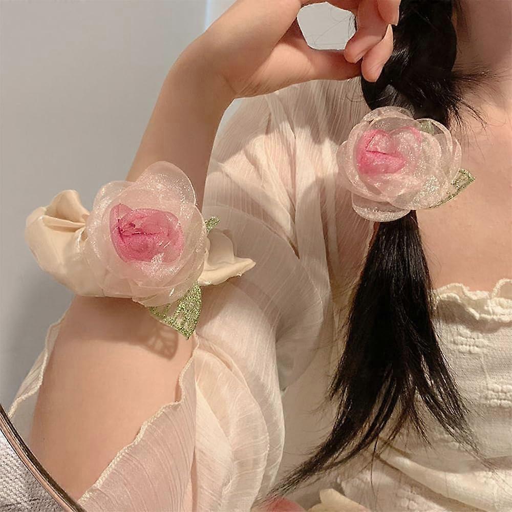 Hair Accessories for Women Pink Floral Scrunchie and Hair Clip Set for Thick Hair Secure Hold