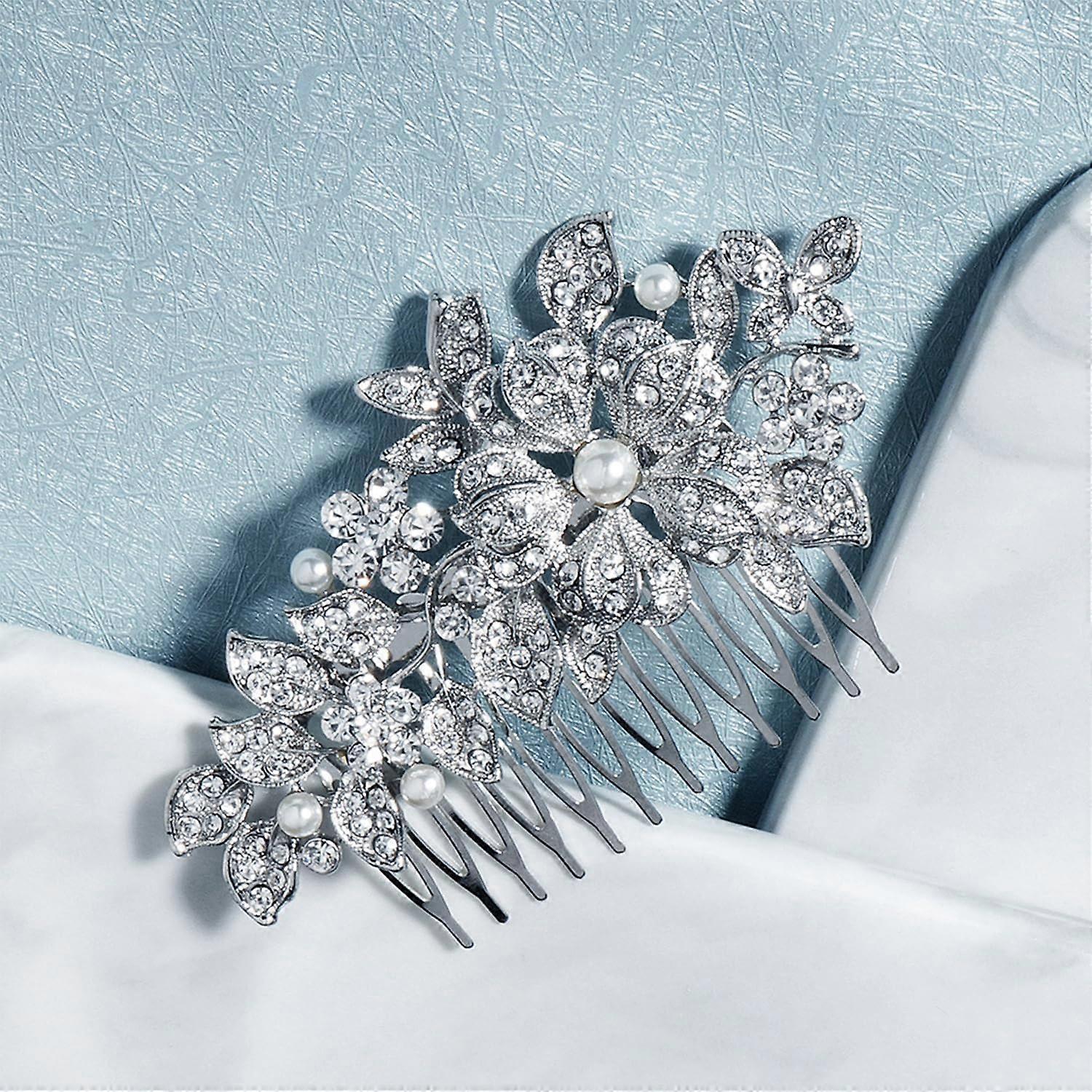 Bridal Hair Comb with Crystal Flower Design, Sparkly Rhinestone Wedding Hair Clip for Women