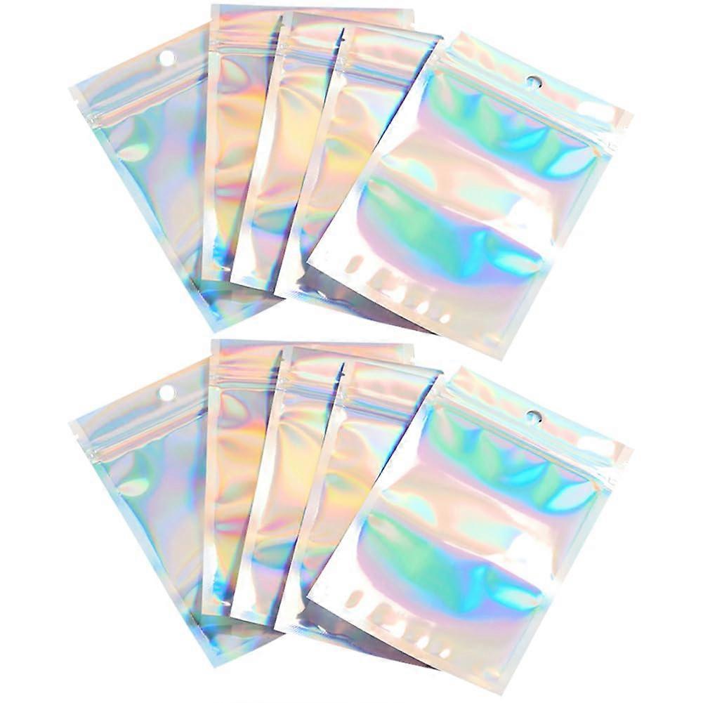 100 Pcs Holographic Gift Bags with Resealable Closure, Smell Proof Foil Ziplock Pouches for Jewelry and Lip Gloss
