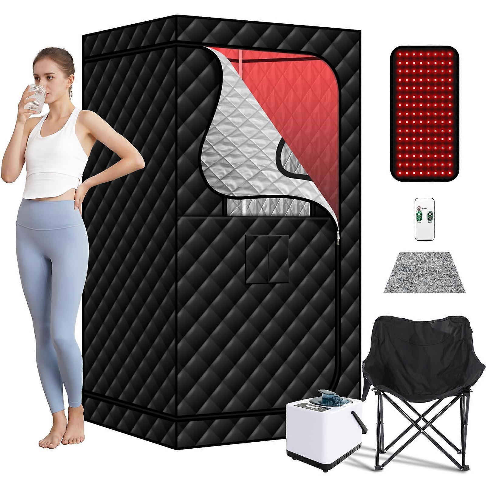 Full Size Portable Infrared Steam Sauna with 660nm Red Light Therapy, Remote Control and Chair for Home Spa