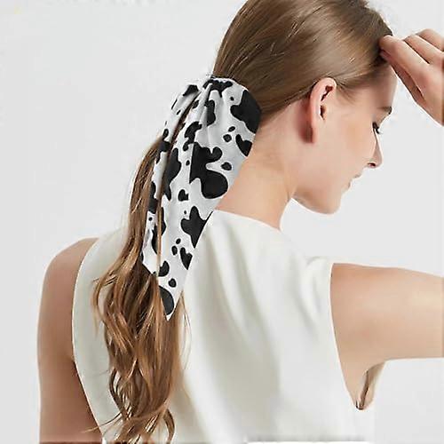 Cow Print Headband for Women, Soft Silky Ribbon Hair Tie, EyeCatching Ponytail Holder
