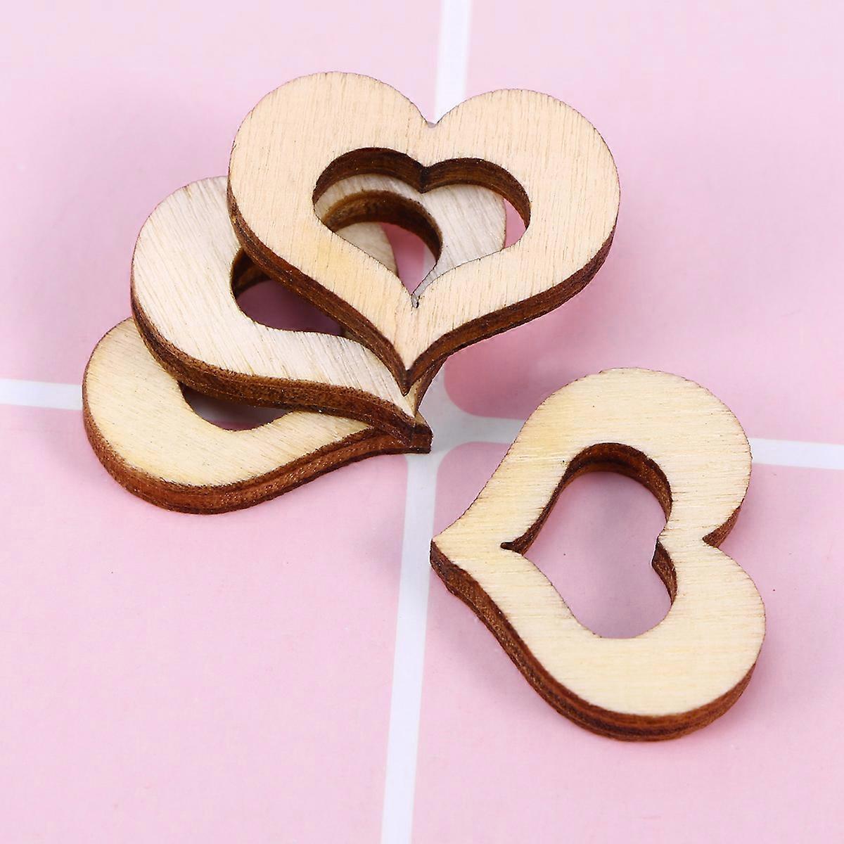 Wooden Hollow Heart Shape Button for Decoration 100Pcs Crafting Accessories for Wedding