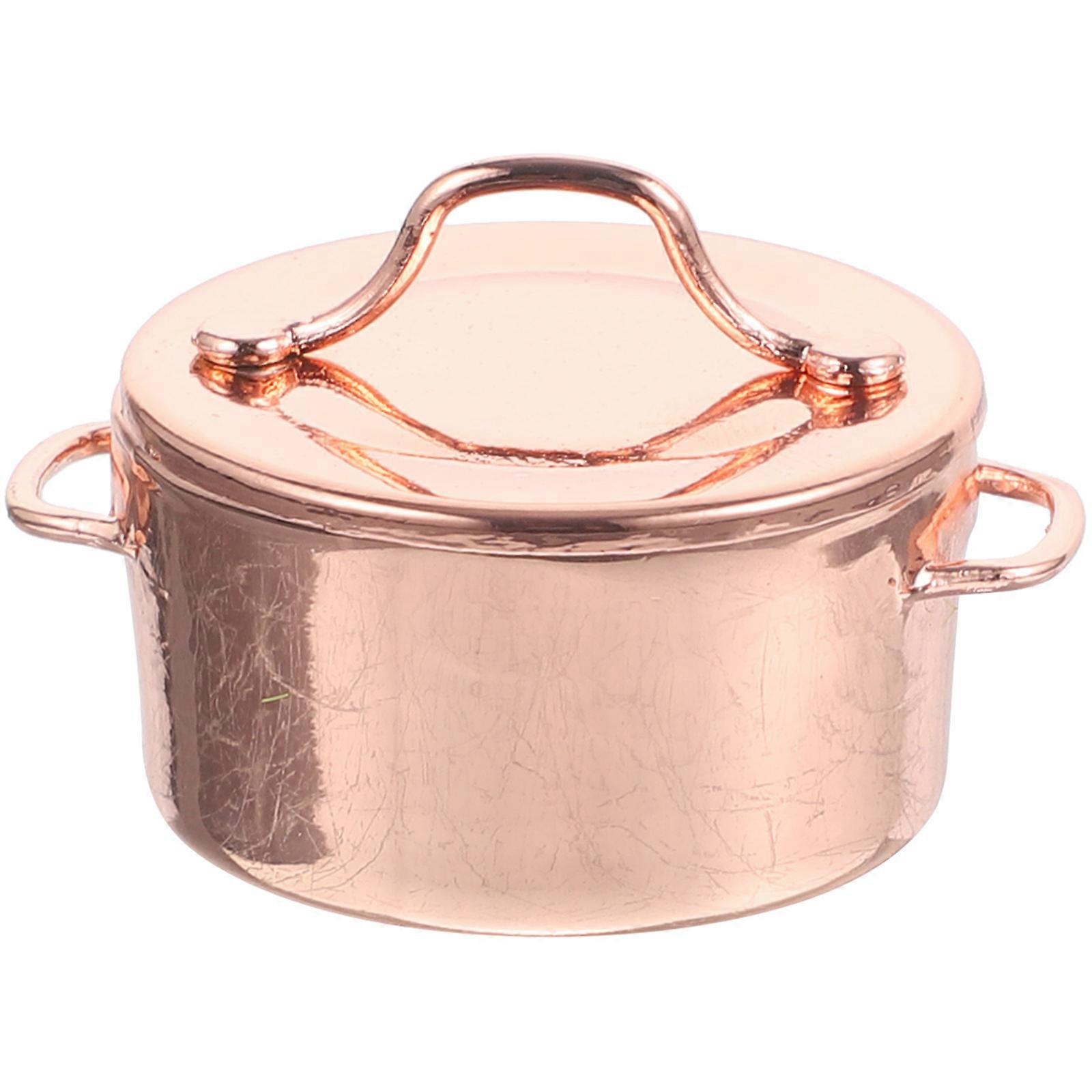 Miniature Kitchen Decoration Toys Dollhouse Kitchen Model Mini Pot Accessories For Playtime Experience In Rose Gold Color 1Pcs