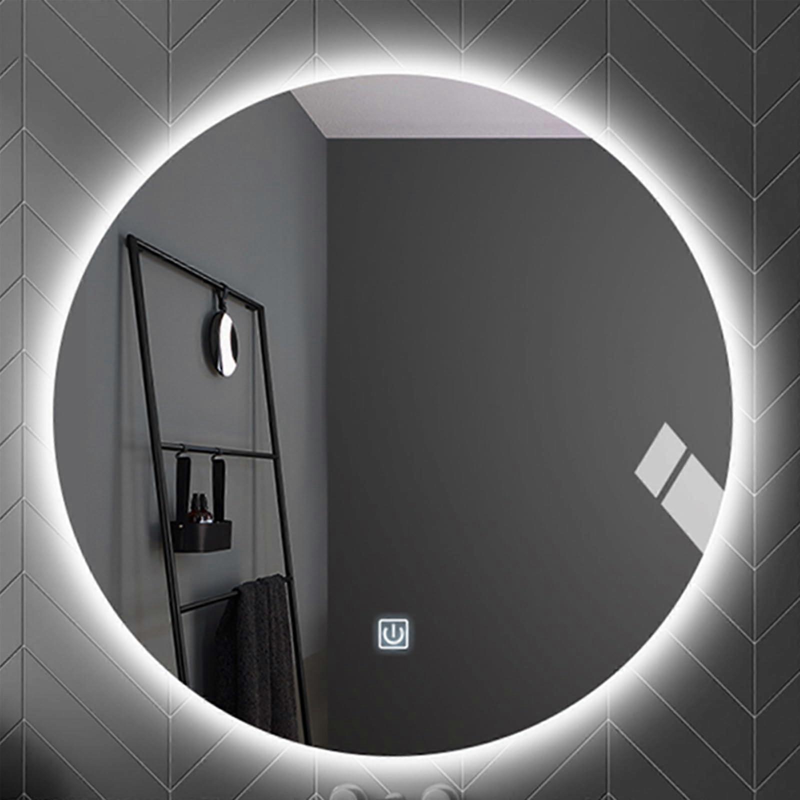 60cm Round LED Bathroom Mirror with Defogger, Dimmable ThreeColor Lighted Vanity Mirror, AntiFog, ShatterProof Design