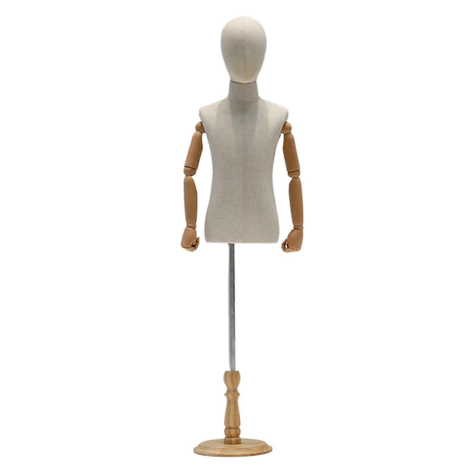 Mannequin Torso with Adjustable Arm and Detachable Body, Reinforced Wooden Base Dress Form for Retail Boutiques, Size 8 Years Old