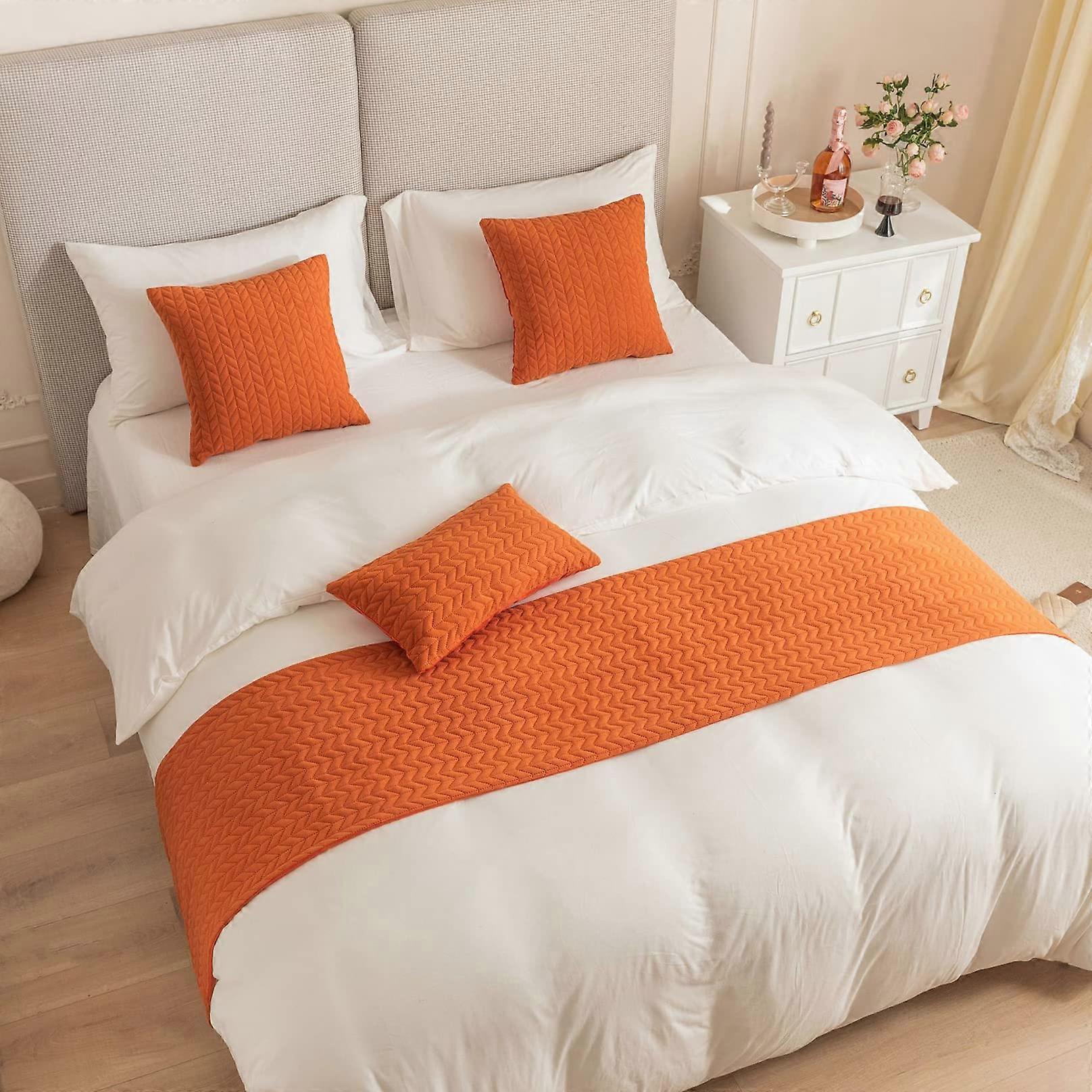 Orange Velvet Bed Runner 45 x 210 cm for Queen Bed, Soft Polyester Hotel Bed Scarf Decor