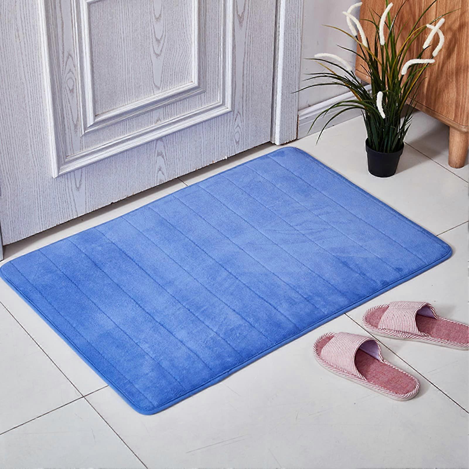 Blue Bathroom Rug 50x80cm Soft Microfiber Bath Mat Quick Water Absorption Non Slip Backing