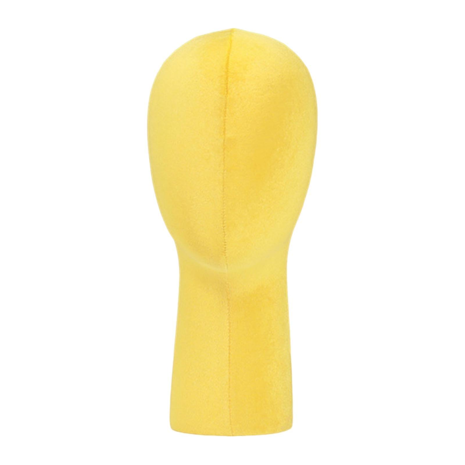 Velvet Non‑Slip Wig Head Stand with Stable Base for Salon Styling and Display, Yellow