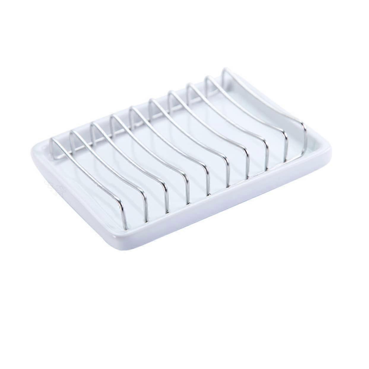 SelfDraining Ceramic Soap Dish Holder, Stainless Steel Tray Keeps Soap Dry, AntiRust EasyClean for Bathroom Kitchen Travel