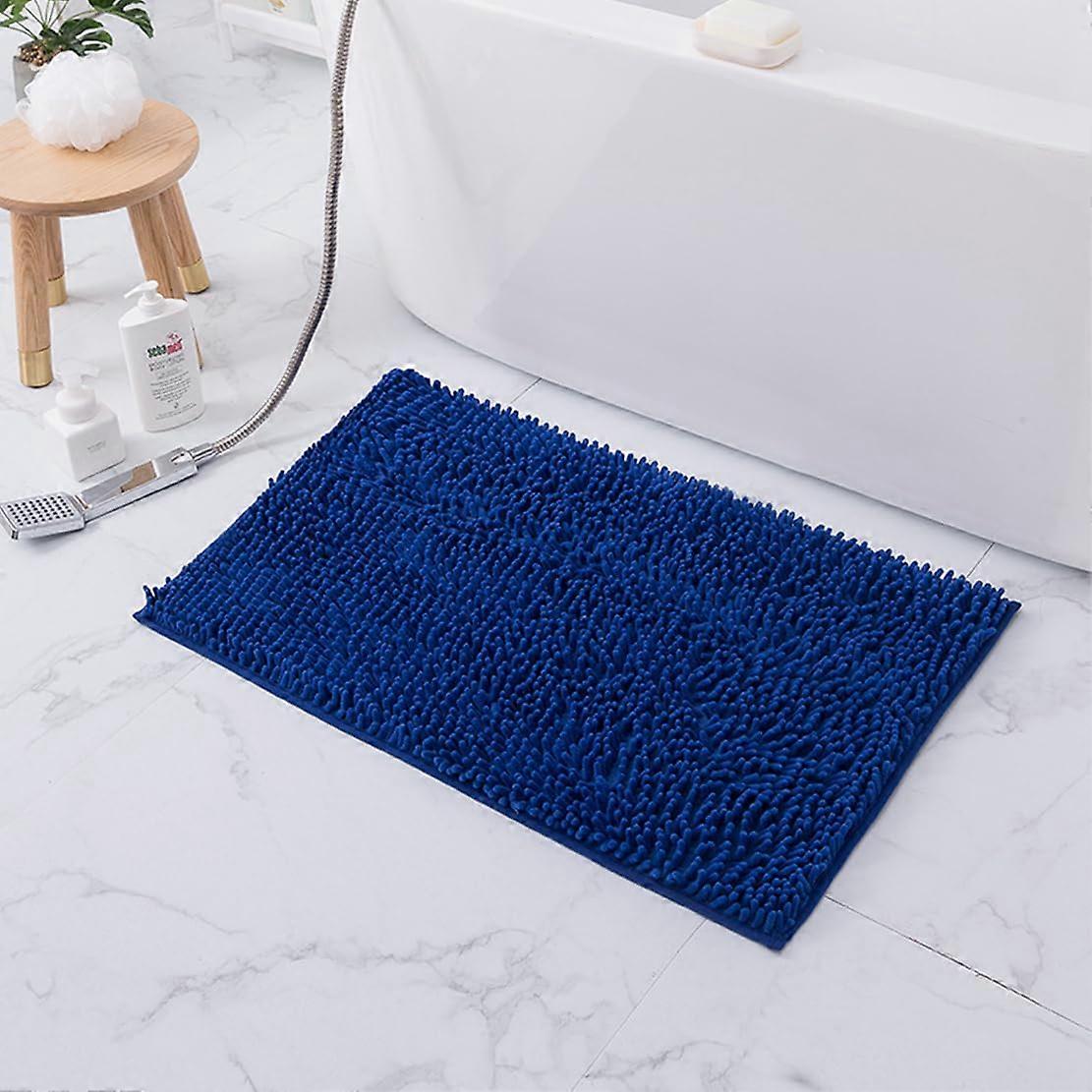 Luxury Chenille Bath Mat 16x24 Blue – Fast Absorption, Non Slip, Plush Comfort, Machine Washable