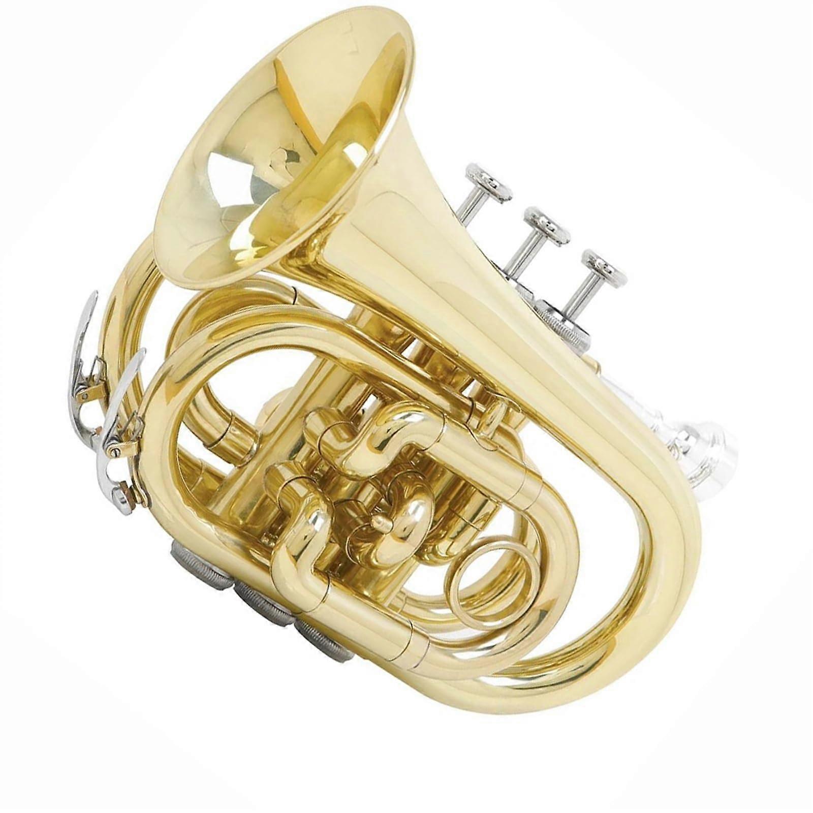 Pocket Trumpet Bb Brass Instrument with Bright Tone Smooth Valves and Case for Beginners Travel