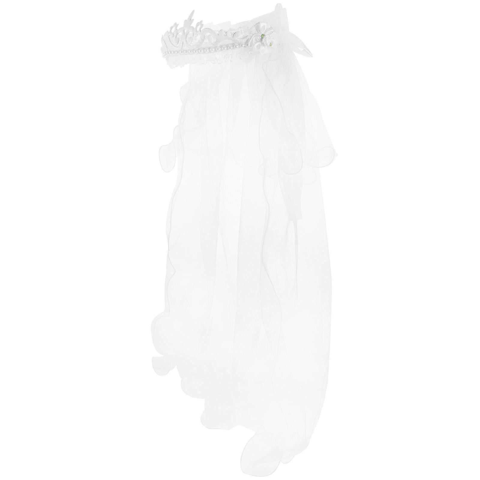Floral Wreath Headband Girl Headpiece For Weddings And Parties With Double Lace Tulle Veil 1Pack
