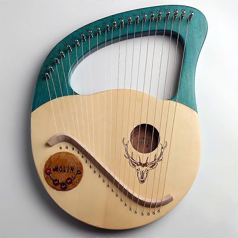 Lyre Harp 21 Metal Strings Mahogany, Rich Resonant Tone Ergonomic Concave Design with Carry Bag and Tuning Wrench (Atrovirens Medium)