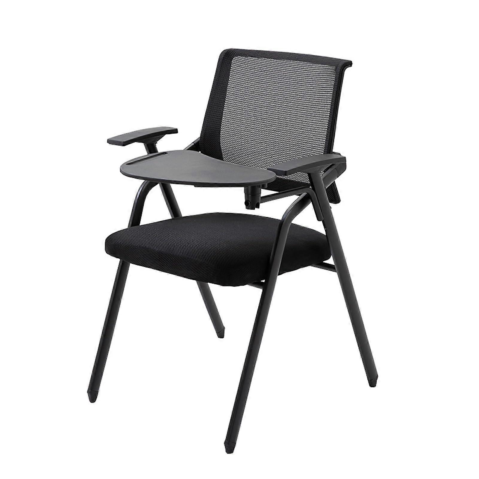 Folding Chair with Writing Tablet, Breathable Mesh Back Conference Room Training Chair, Black
