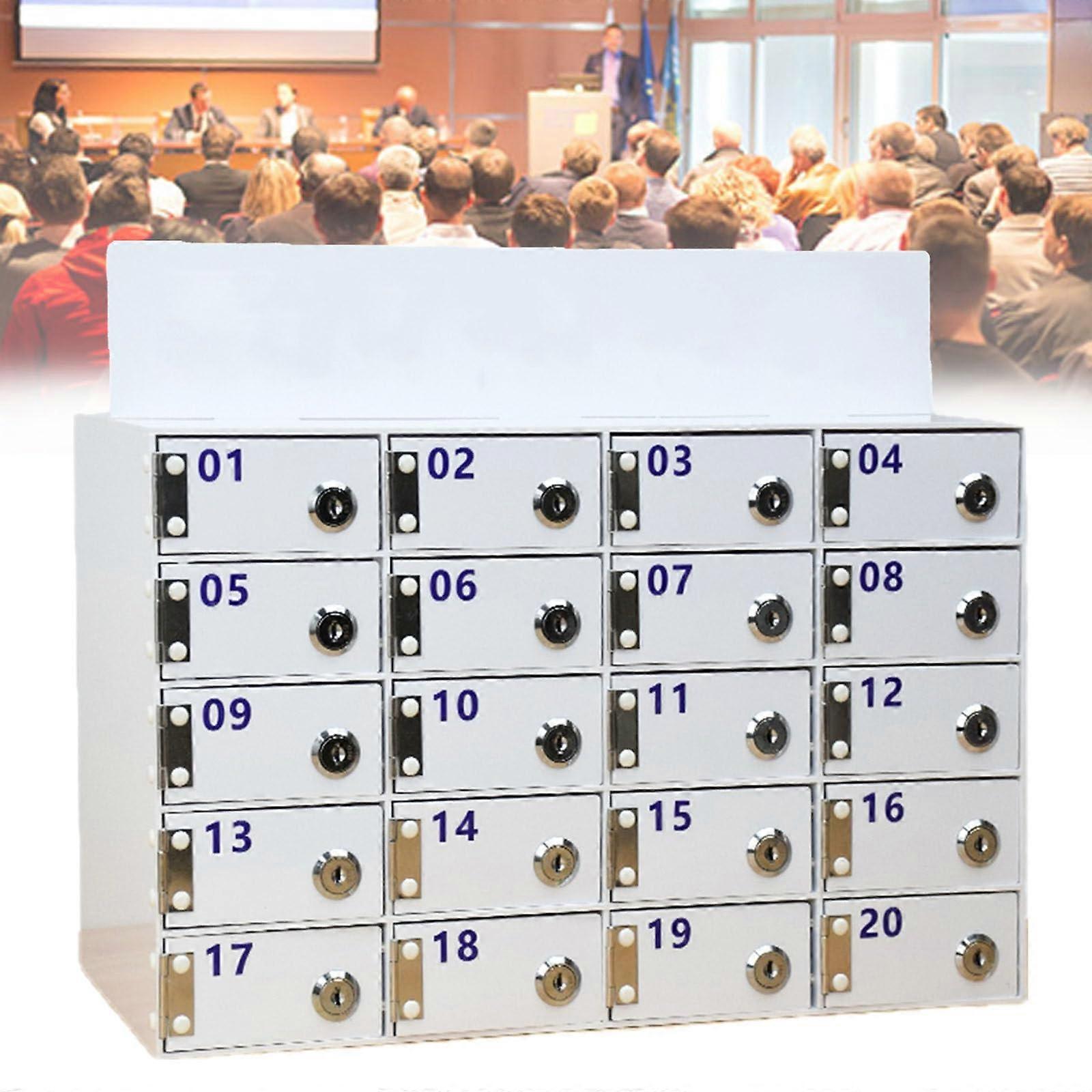 Clear, secure storage for phones and small valuables This cell phone locker box combines transparent acrylic panels with a white cabinet body to let you see contents at a glance while keeping items organized and private. A sturdy metal lock with an attached number plate protects devices from unauthorized access and makes it easy to assign and track compartments. Key features Transparent acrylic front for quick identification of devices without opening compartments. Metal lock with number plate for secure, numbered access to each compartment. Largecapacity cabinet design accommodates most mobile phones plus keys, wallets, cards, and other small items. Writable number labels and space for names or stickers to simplify assignment and retrieval. Dual installation options: standing on a table or hanging on the wall using the rear buckle. Units can also be stacked for expanded capacity. Durable construction using thick acrylic panels and metal hardware for longterm use. Why customers choose this locker box Combines visibility and privacy: easy to locate items while maintaining a clean, uniform exterior. Reduces clutter and distraction in shared spaces by providing dedicated storage for items. Flexible installation and stacking allow use in tight or changing environments. Practical applications Classroom or school common areas: store student phones and small valuables during lessons. Conference rooms and offices: secure participants devices and belongings during meetings. Restaurants and factories: keep staff phones and items organized during shifts. Material and compatibility Material: transparent acrylic panels with a white cabinet body and metal lock hardware. Compatible with a wide range of mobile phones and common small items. This locker box offers a practical balance of visibility, security, and flexible installation for classrooms, offices, restaurants, and other shared environments.
