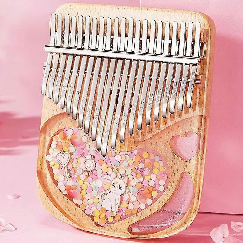 21key Kalimba Thumb Piano for Kids, Adults, and Beginners Compact, easy to play, and musically expressive, this 21key kalimba is a portable thumb piano designed for learners and casual players. Natural wood and environmentally friendly resin create a striking appearance while delivering a bright, lively C key tone. Key benefits Smooth, comfortable play: Thickened metal tines are engraved with numeric note markings and an optimized curved profile for a natural thumb feel and consistent contact. Clear, resonant sound: Ushaped body design improves resonance and sustain, producing a fuller, more stable tone that suits solo practice and small group playing. Ready to use and tune: Includes a tuning hammer and printed note markings so beginners can learn quickly and adjust pitch as needed. Durable and attractive construction: Natural log and environmentally friendly resin combine visual appeal with stable performance. Portable and protected: Compact dimensions and an included EVA case make it easy to carry and store without damage. Specifications Material: natural log and environmentally friendly resin Size: 138 x 180 x 20 mm Key: 21 keys Base tone: C key, bright and lively What is included 1 Kalimba 1 EVA piano case 1 cleaning cloth 1 set of stickers 1 tuning hammer 1 English manual Practical uses Learning and practice: Ideal for beginners and children learning music fundamentals, note recognition, and simple melodies. Travel and relaxation: Small and lightweight for travel, camping, or quiet moments at home. Teaching and group activities: Suitable for classroom demonstrations, group singalongs, and music workshops. How it helps Makes learning accessible with engraved notes and simple thumb technique. Provides a stable, tunable instrument for practice and casual performance. Protects the instrument during transport and keeps accessories organized. This kalimba offers a balanced combination of playability, sound quality, and portability for players and casual musicians.