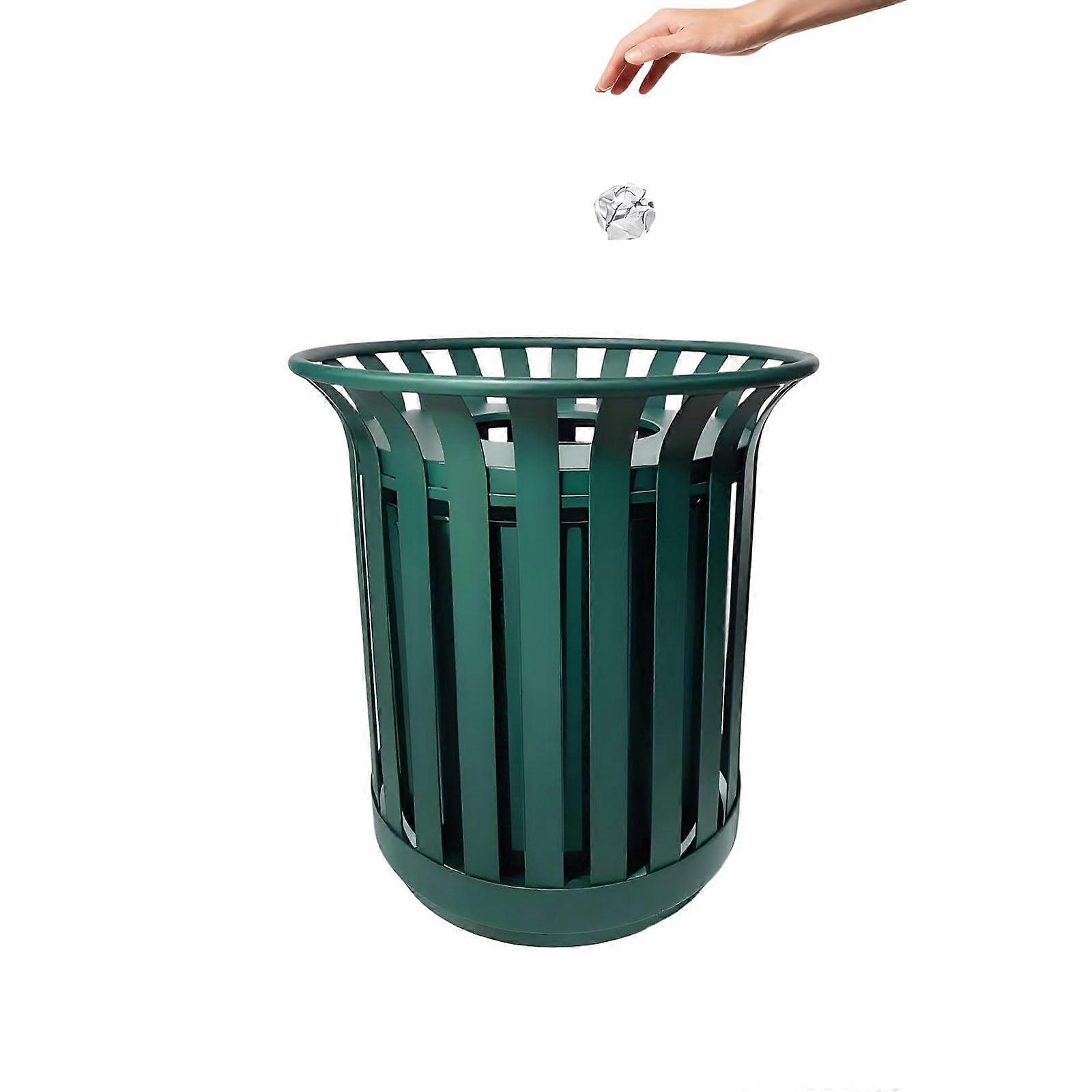 30 Gallon Outdoor Trash Can with Lid, Weather Resistant Stainless Steel Receptacle, Ground Mounted
