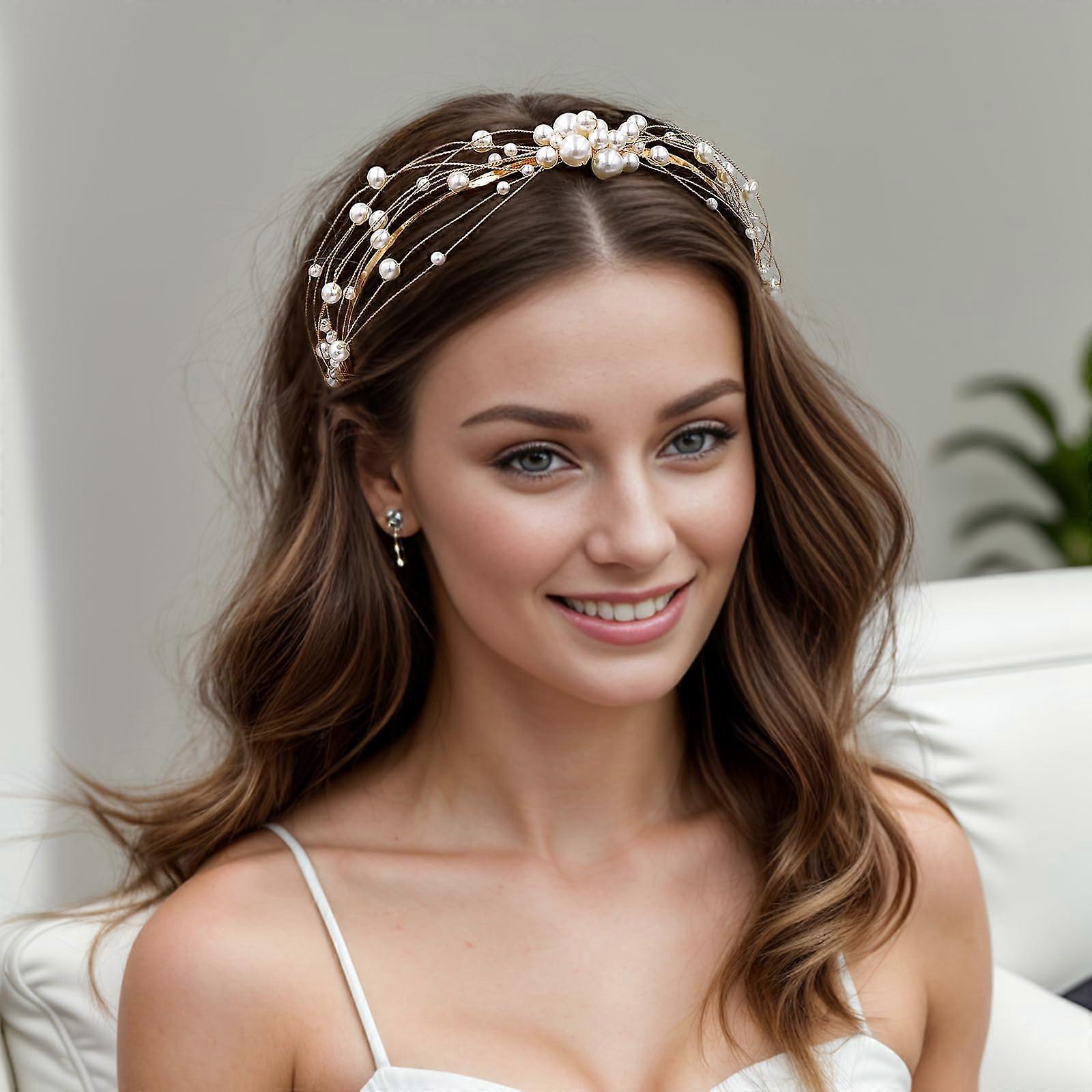 Bridal Headband with Elegant Pearl Wreath, Gold Pearl Wedding Hair Accessory for Brides