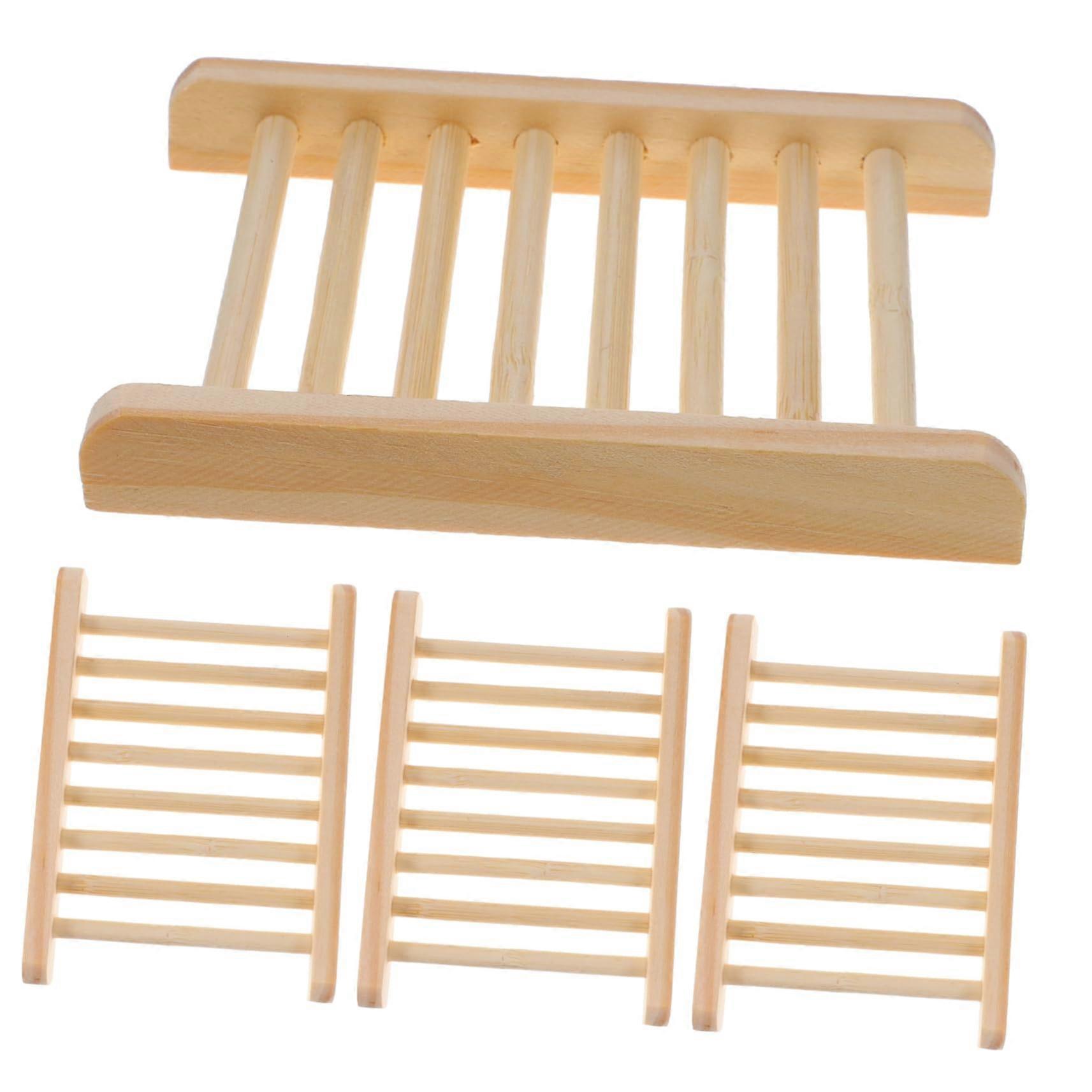 Soap Dish Set Rustic Wooden Self Draining Soap Holder for Bathroom, Shower and Kitchen, 4pcs