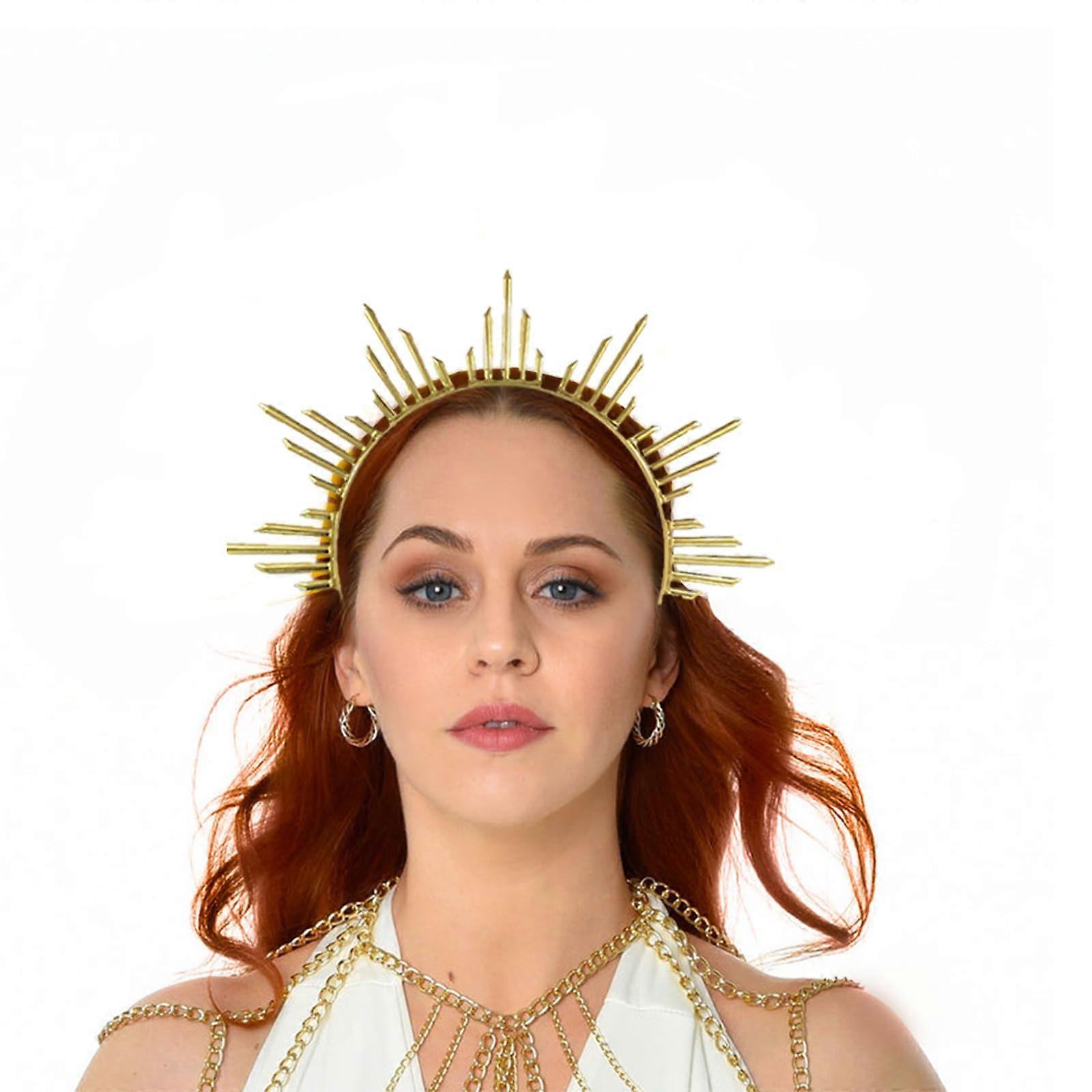 Halloween Halo Crown Gold Spiked Sunburst Goddess Headband for Women Cosplay and Party