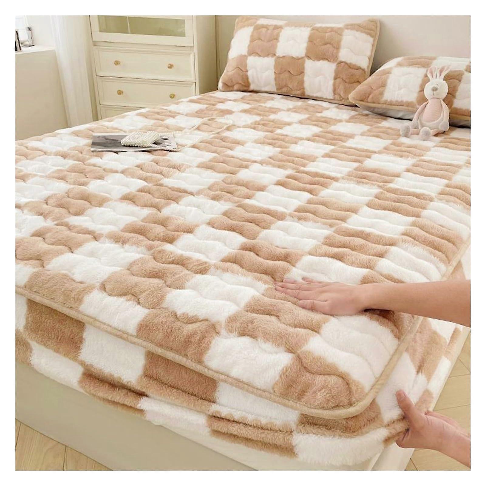 Velvet Fitted Sheet Mattress Protector Milk Coffee 79x87in Extra Soft Breathable Nonpilling Fabric California King