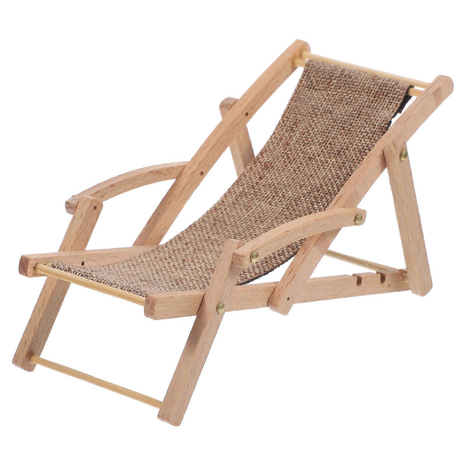 Miniature Beach Chair Model for Decoration Stable Light Brown Wood Doll Chair