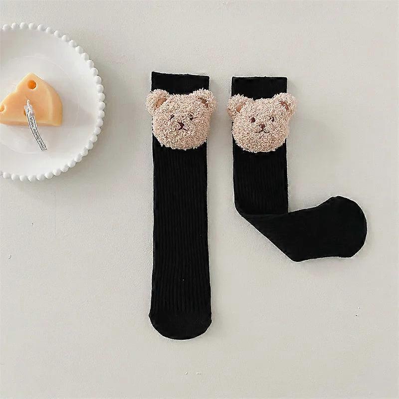 Bear Doll Children Long Tube Socks Winter Autumn Warm Kids Knee High Sock Cotton Girl Sokken Soild Color Stockings чулки 2-8y