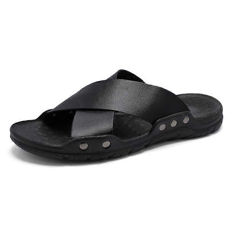 Mens Slide Sandals Open Toe Non-Slip Comfortable Slippers Men Leather Summer Lightweight