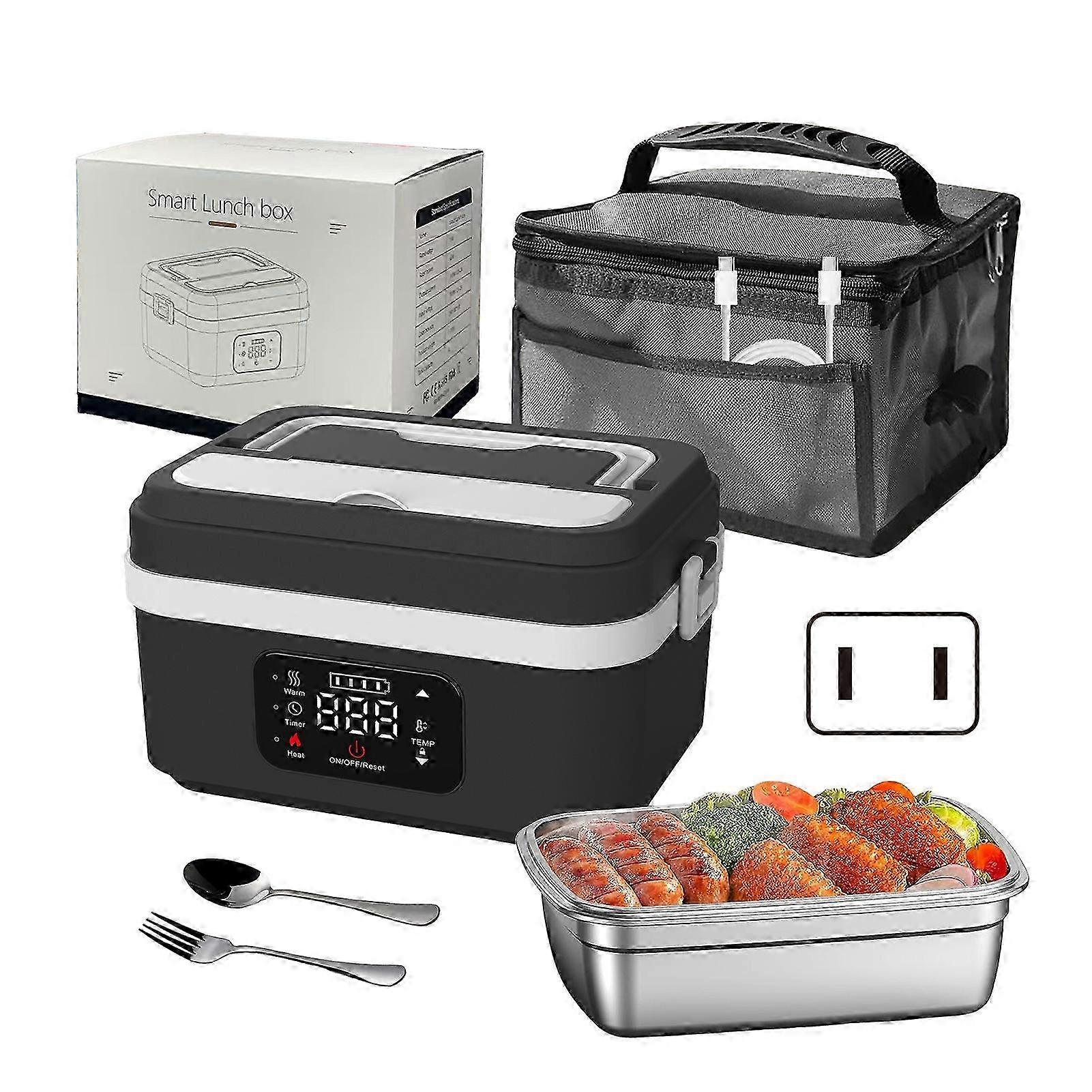 Electric Lunch Box with Self-Heating Function, 1L Capacity, Timer for Work, Travel & Camping, Leakproof Stainless Steel Container