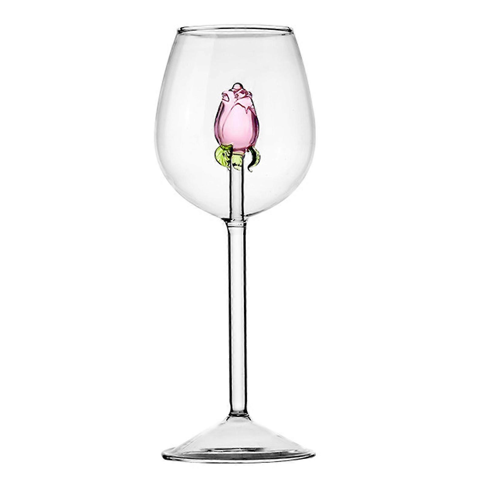 3D Creative Stemmed Wine Glass with Rose Interior - Unique Romantic Flower Cocktail Glassware for Fine Dining