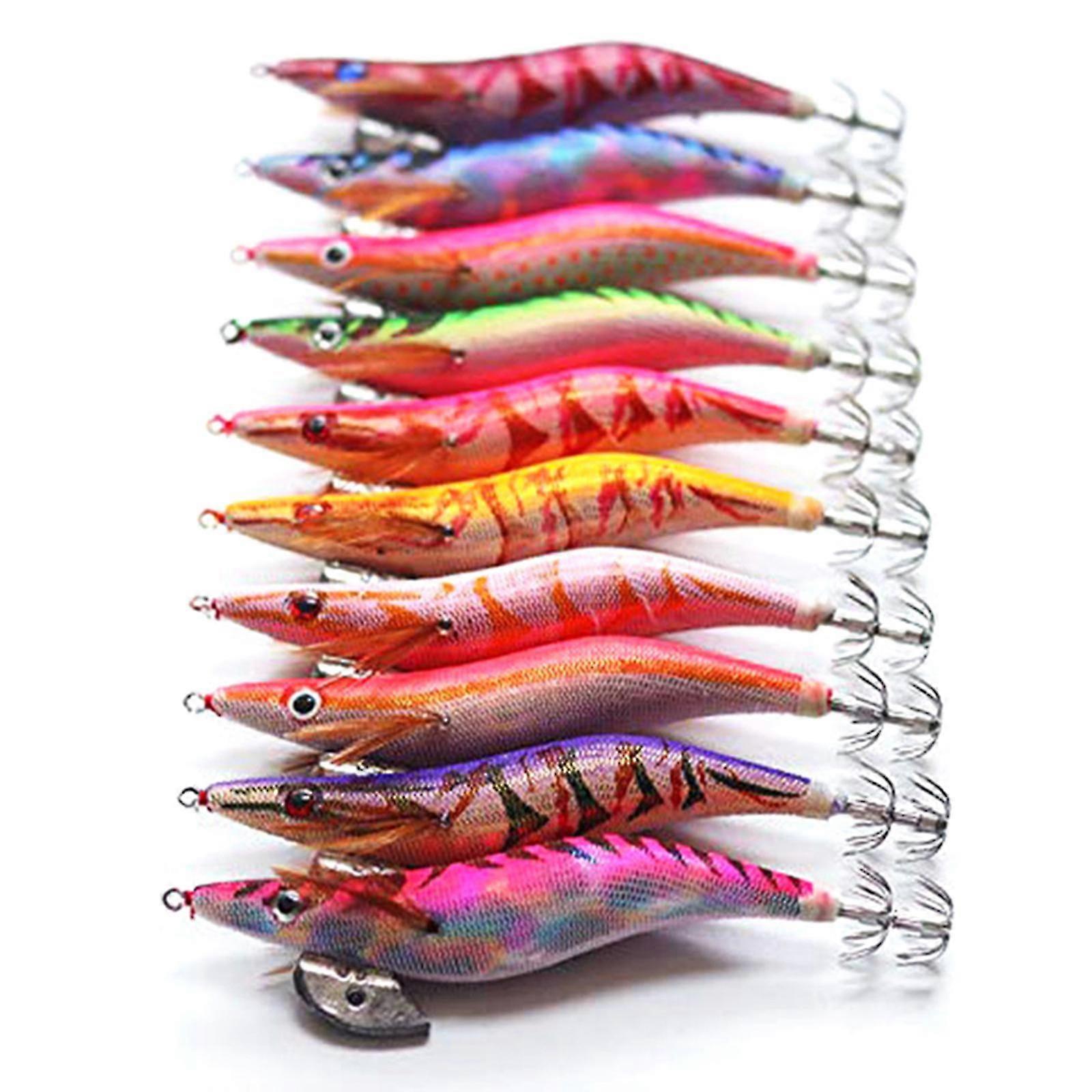 Features: 1. High Sharpness Stainless Steel Squid Hooks 2. Luminous Tail, Bright Color to Attact Big Fishes 3. Easy to use. High simulation shrimp design. 4. Perfect design can increase your catches and create more fun. 5. Target fish: squid, octopus, cuttlefish Notice: 1. Actual color may be slightly different from the image due to different monitor and light effect. Please allow 1-3cm deviation due to manual measurement. Specification: Size: 2.5inches: length 100mm 3.0inches: length 120mm 3.5inches: length 135mm Suitable for waters: sea water Suitable fishing method: Casting Target fish: squid, octopus, cuttlefish Package List: 10 x fishing lures