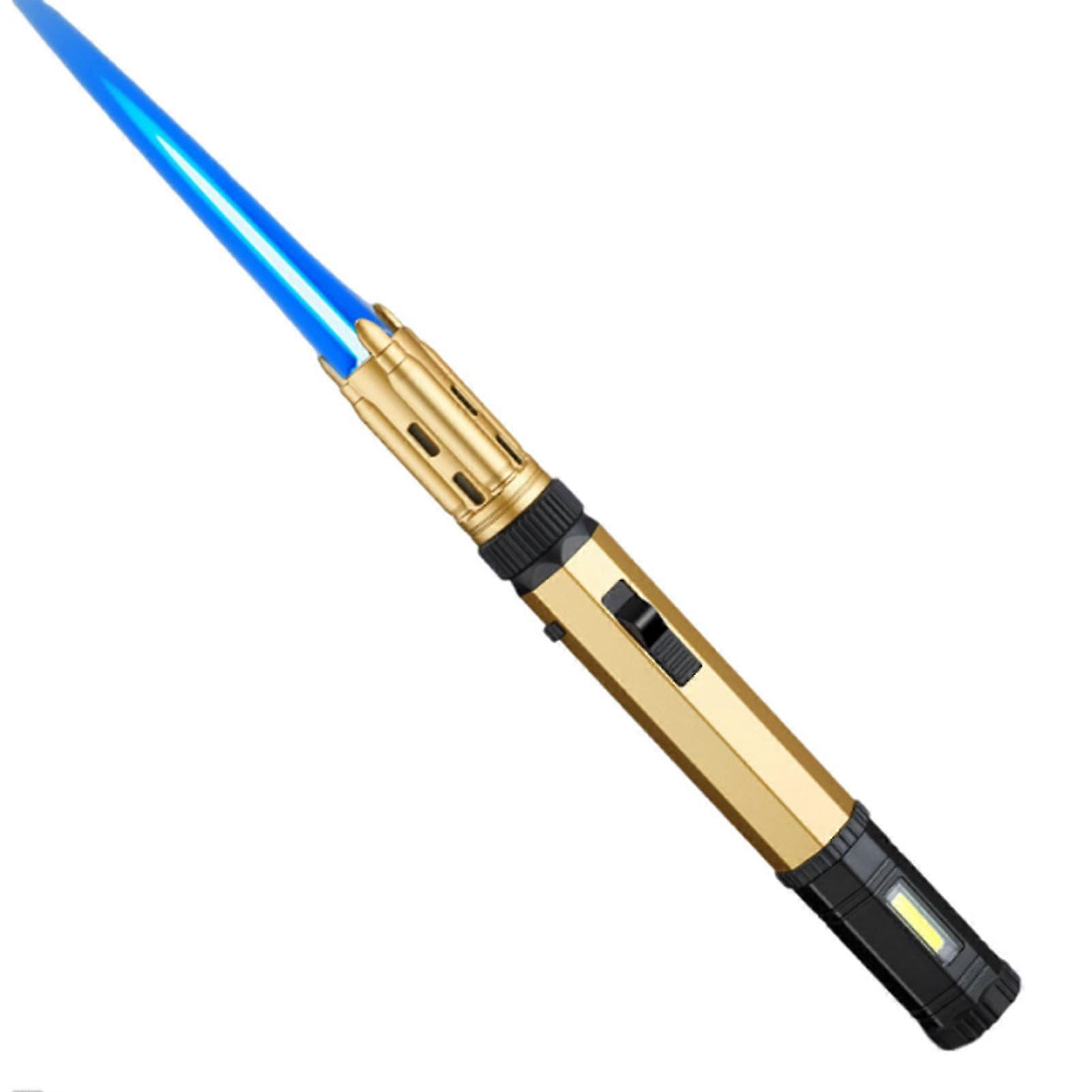 Adjusted Butane Jet Torch Lighter with LED for Outdoor BBQ, Adjustable Blue Flames Inflatable Lighter for Kitchen Use